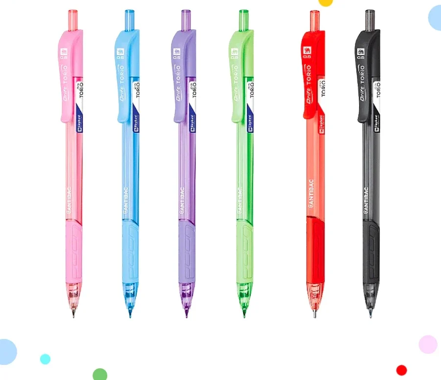 ● ดีไซน์ตัวด้ามโปร่งสีสันสดใส ปุ่มกดและคลิปสีเดียวกับด้าม